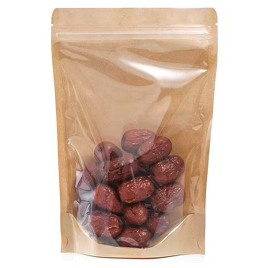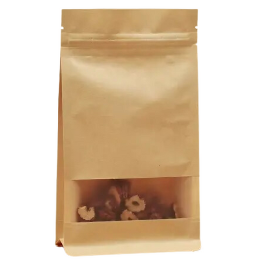 Resealable Food Packaging Pouches | Heat Sealable | Stand-up Bottom | Brown Kraft Paper